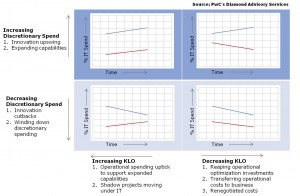 However, we contend that discretionary and KTLO spend must be managed as cyclical waves by identifying patterns that drive discretionary and KTLO IT spend. This way companies can fine-tune IT spending by driving significant innovation during an uptick and optimizing it during a downturn.